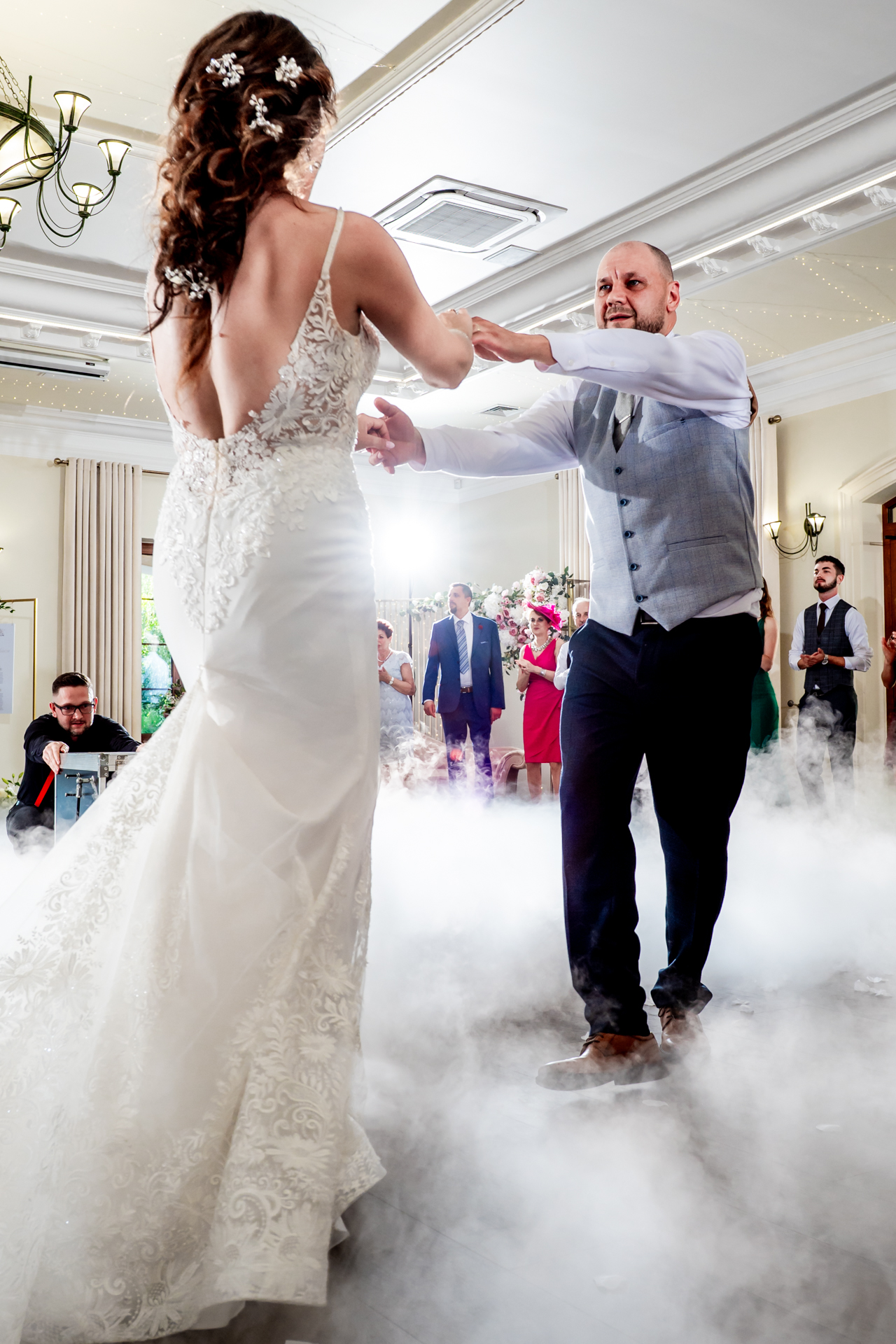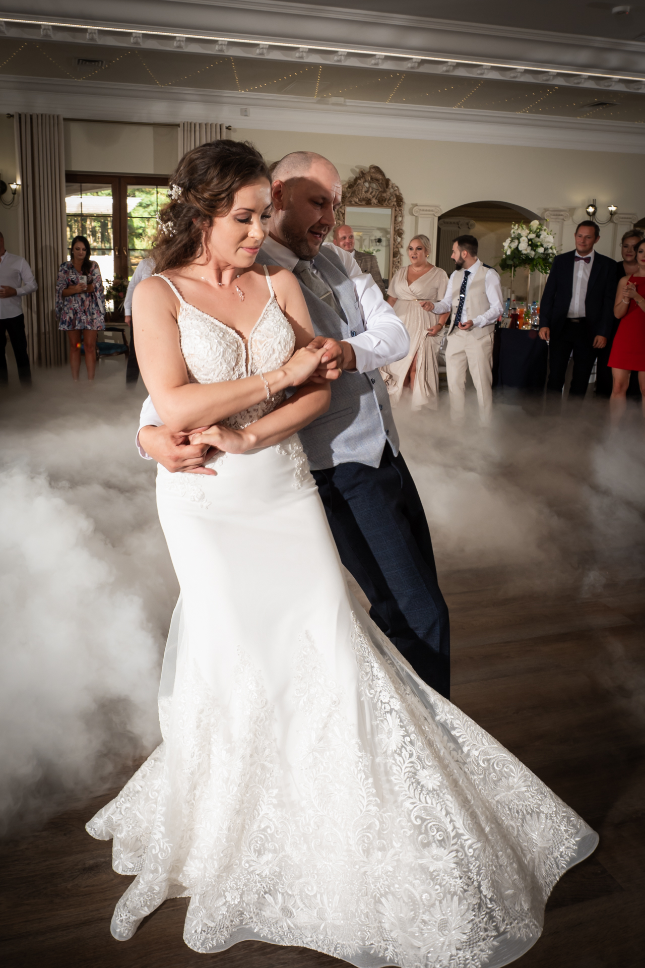 Światła na sali często tworzą atmosferę, której nie da się odtworzyć w żadnym innym momencie. Miękkie reflektory, delikatny dym, ciepłe barwy — to wszystko buduje klimat zdjęć.